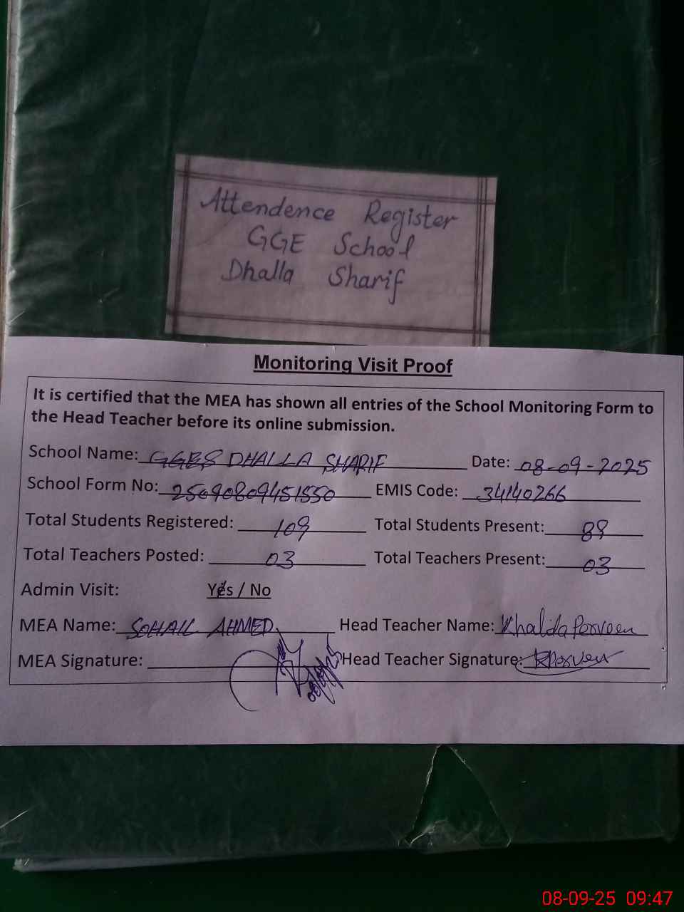| EMIS Code: 34140266 | Name of School: GGES DHALLA SHARIF | |||