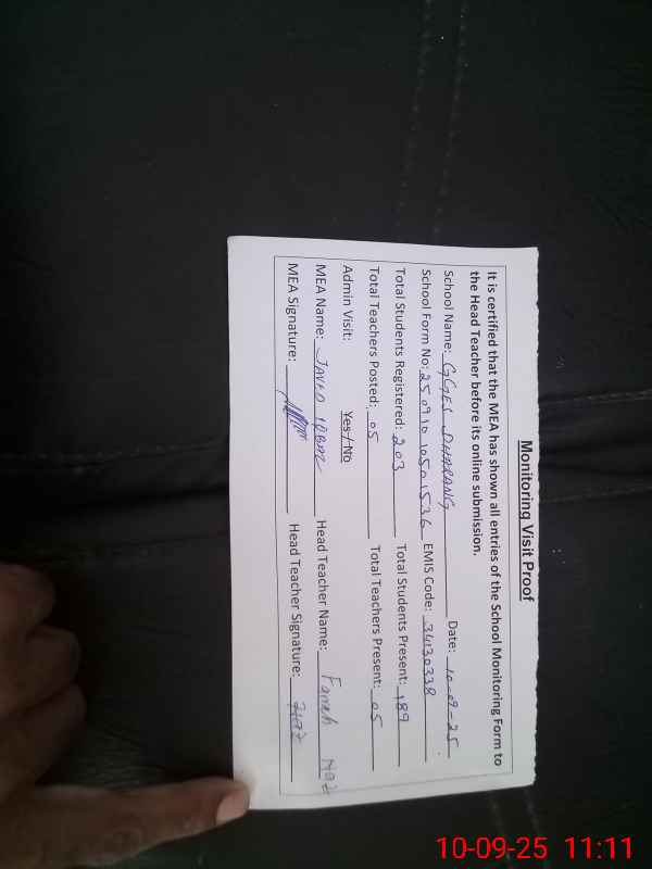 | Attendance Register | Head Teacher | MEA with School | Visit Proof |