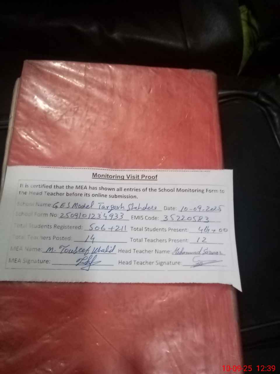 | Attendance Register | Head Teacher | MEA with School | Visit Proof |