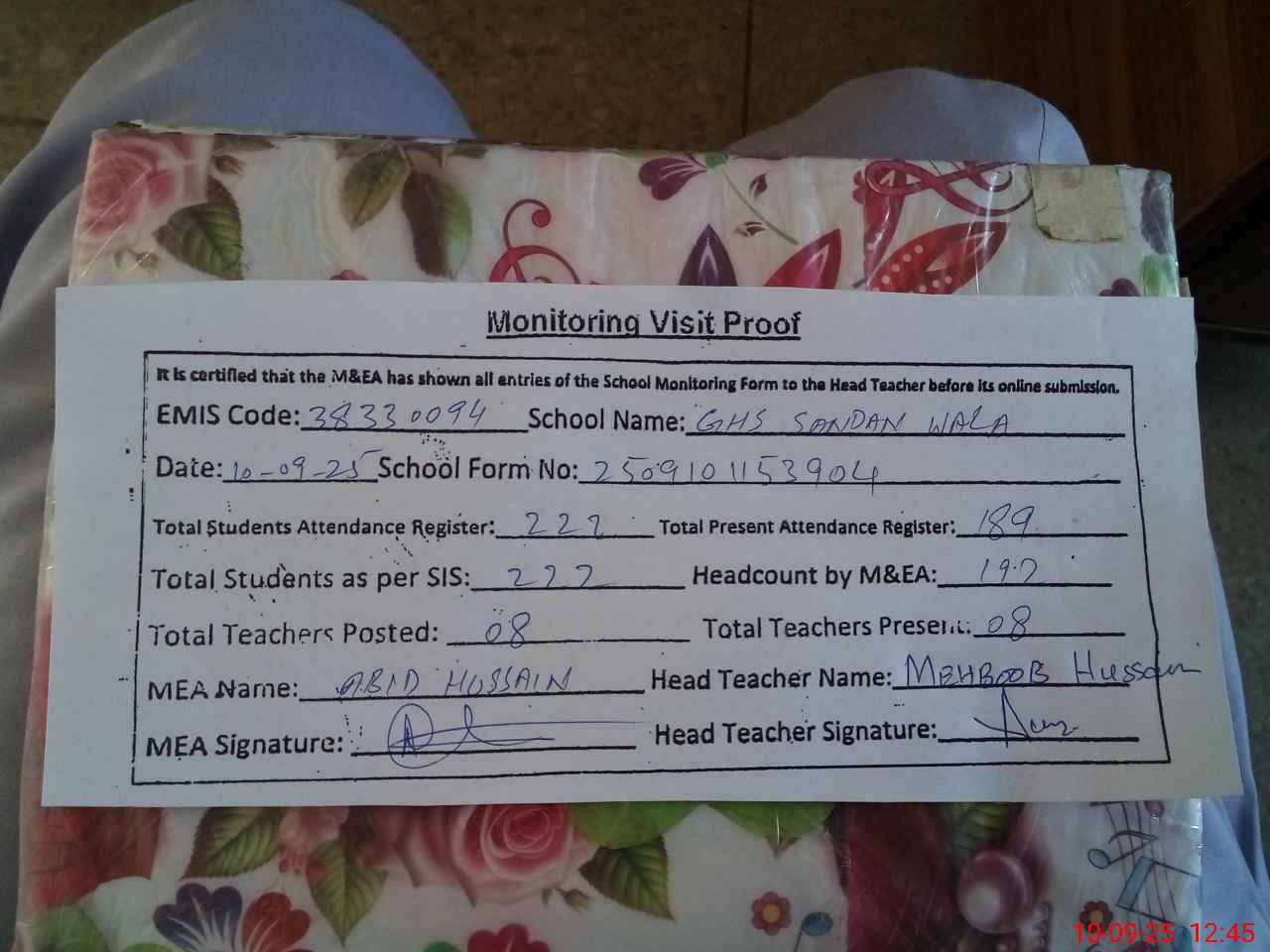 | EMIS Code: 38330094 | Name of School: GHS SANDAN WALA | |||