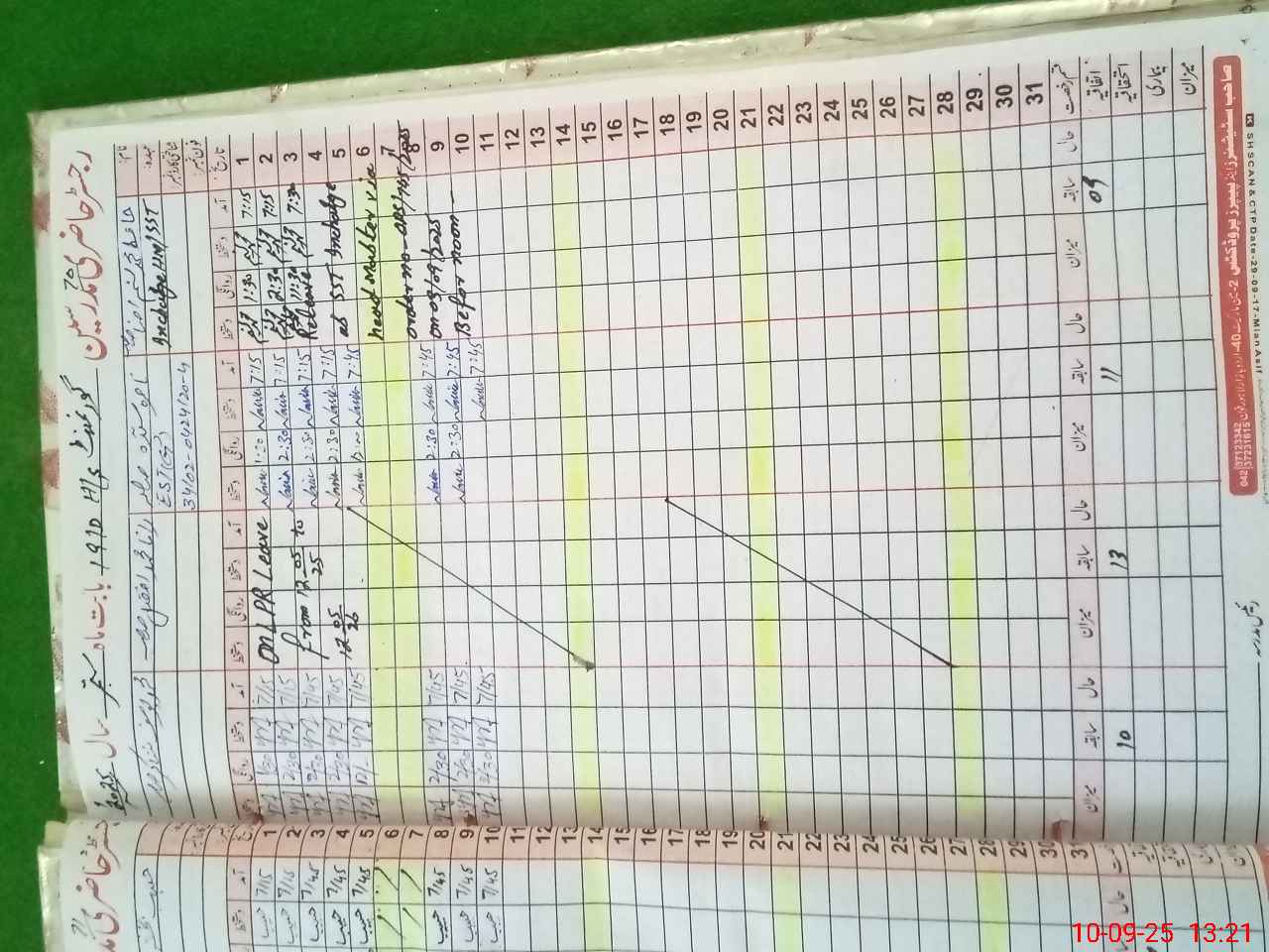 | CNIC | Full Name | Designation | R/C | Absence During Last Calender Month |