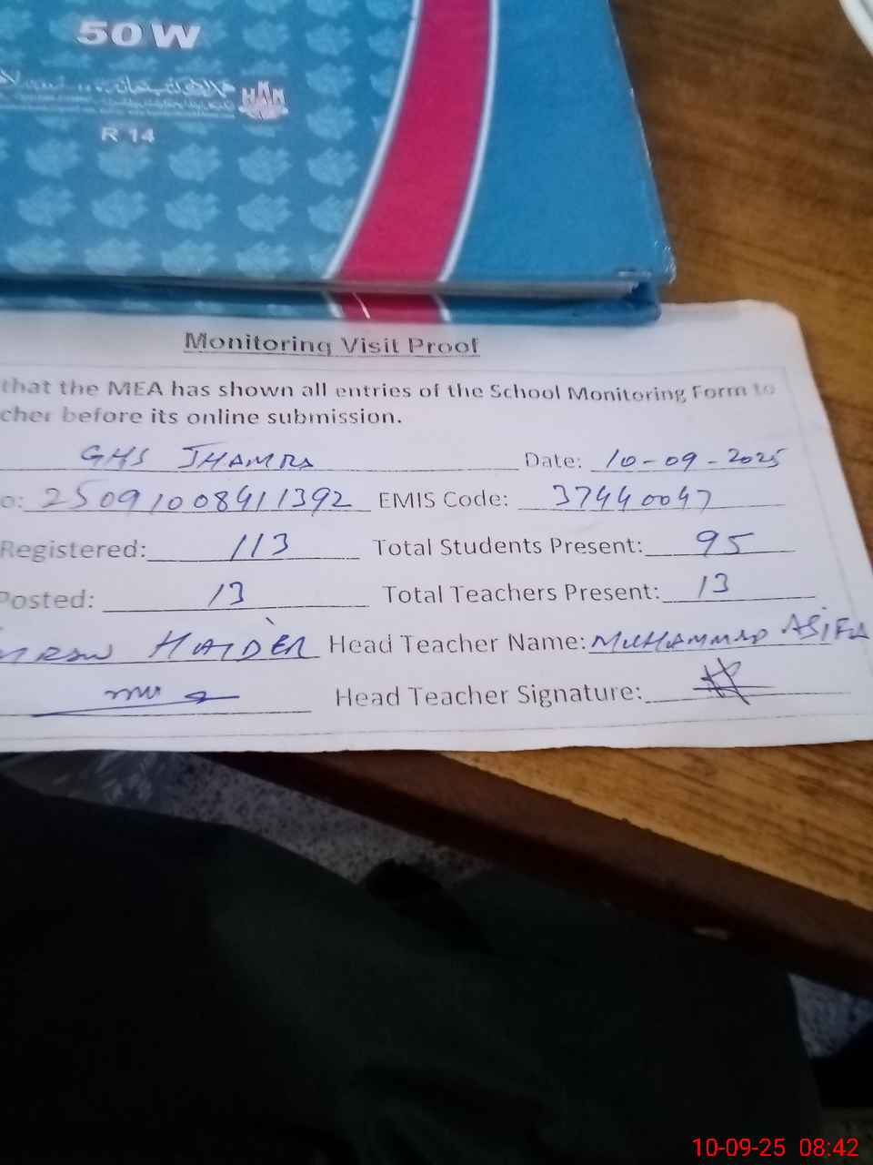 | Monitoring Date: 10-09-2025 | Start Time: 10-09-2025 08:00 AM | End Time: 10-09-2025 08:45 AM | Name of MEA: Im**** Ha**** | |
