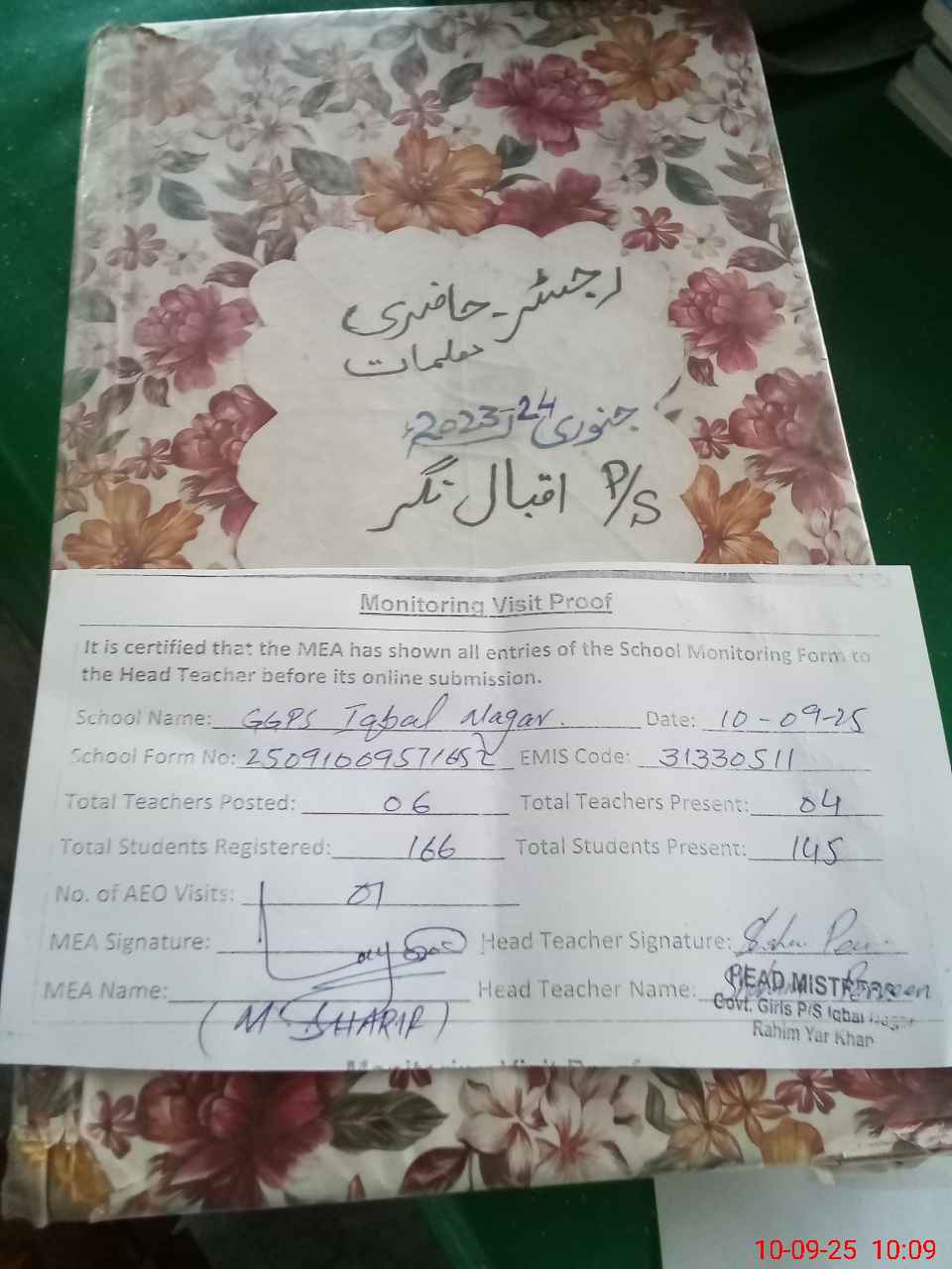 | District: RAHIMYAR KHAN | Tehsil: RAHIMYAR KHAN | Markaz: IQBAL NAGAR-FEMALE | Level: Primary | |