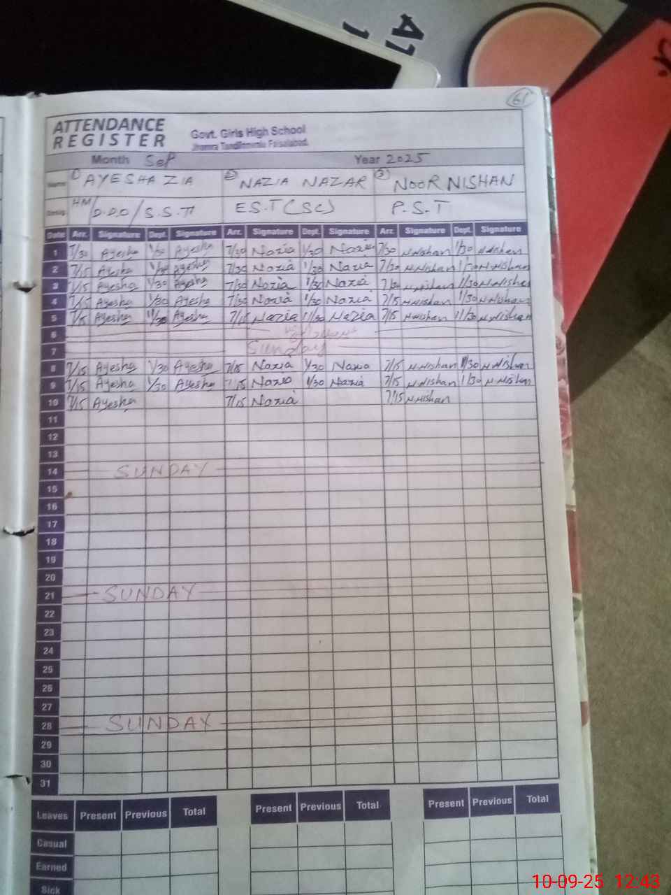 | Leave | Duty | Absent | Maternity | Medical | Ex- Pak |