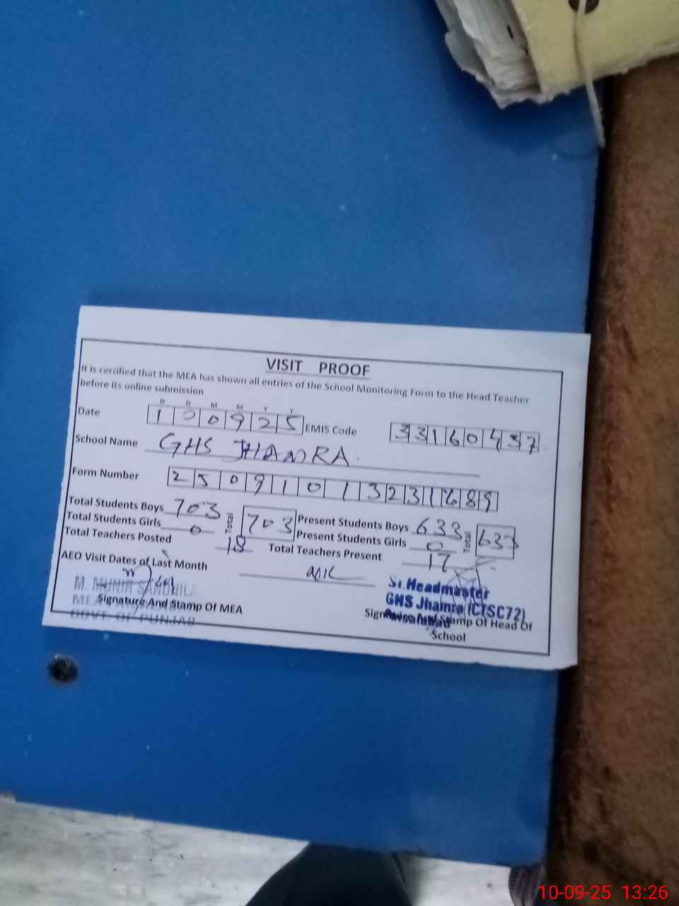 | EMIS Code: 33160437 | Name of School: GHS JHAMRA TANDLIANWALA FSD | |||