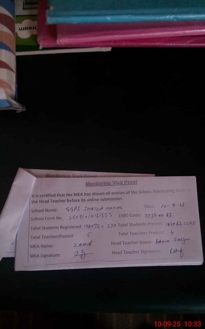 | EMIS Code: 37340083 | Name of School: GGPS JHATLA HATIAL | |||