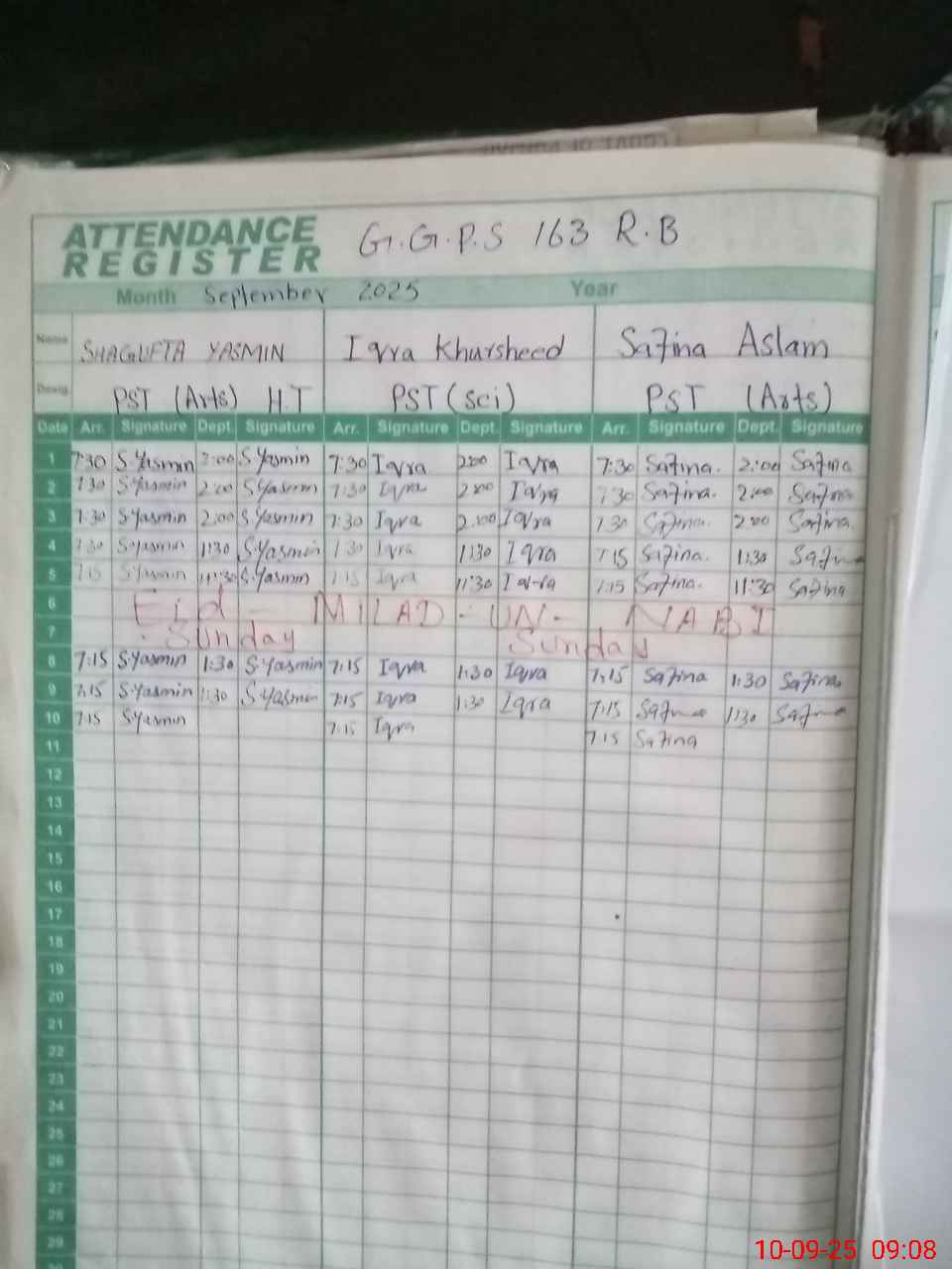 | Monitoring Date: 10-09-2025 | Start Time: 10-09-2025 08:28 AM | End Time: 10-09-2025 09:20 AM | Name of MEA: Ma**** Al**** | |