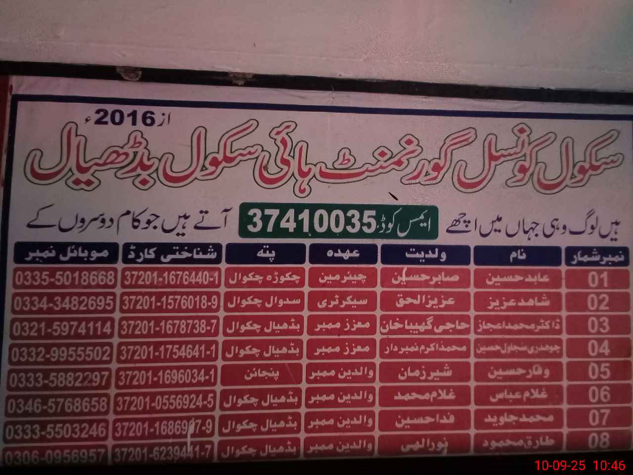 | District: CHAKWAL | Tehsil: CHAKWAL | Markaz: SECONDARY-WING | Level: High | |