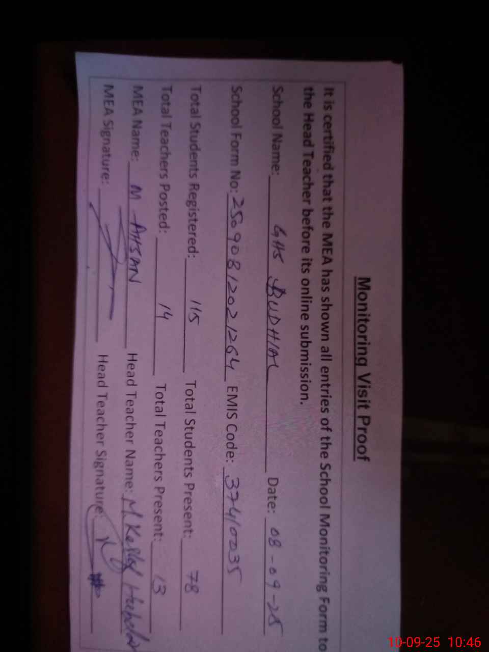 | Monitoring Date: 10-09-2025 | Start Time: 10-09-2025 09:37 AM | End Time: 10-09-2025 10:49 AM | Name of MEA: Mu**** Ah**** Ma**** | |