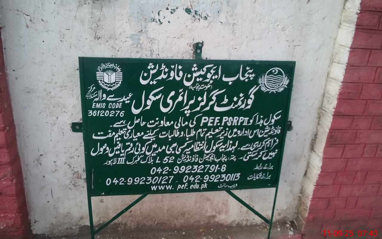 | EMIS Code: 36120276 | Name of School: GGPS EIDAY WALA MUZA SIKANDAR ABAD | |||
