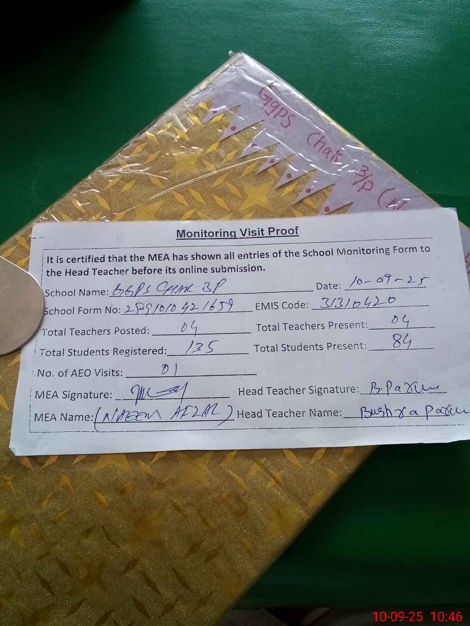 | EMIS Code: 31310420 | Name of School: GGPS CHAK 3/P | |||