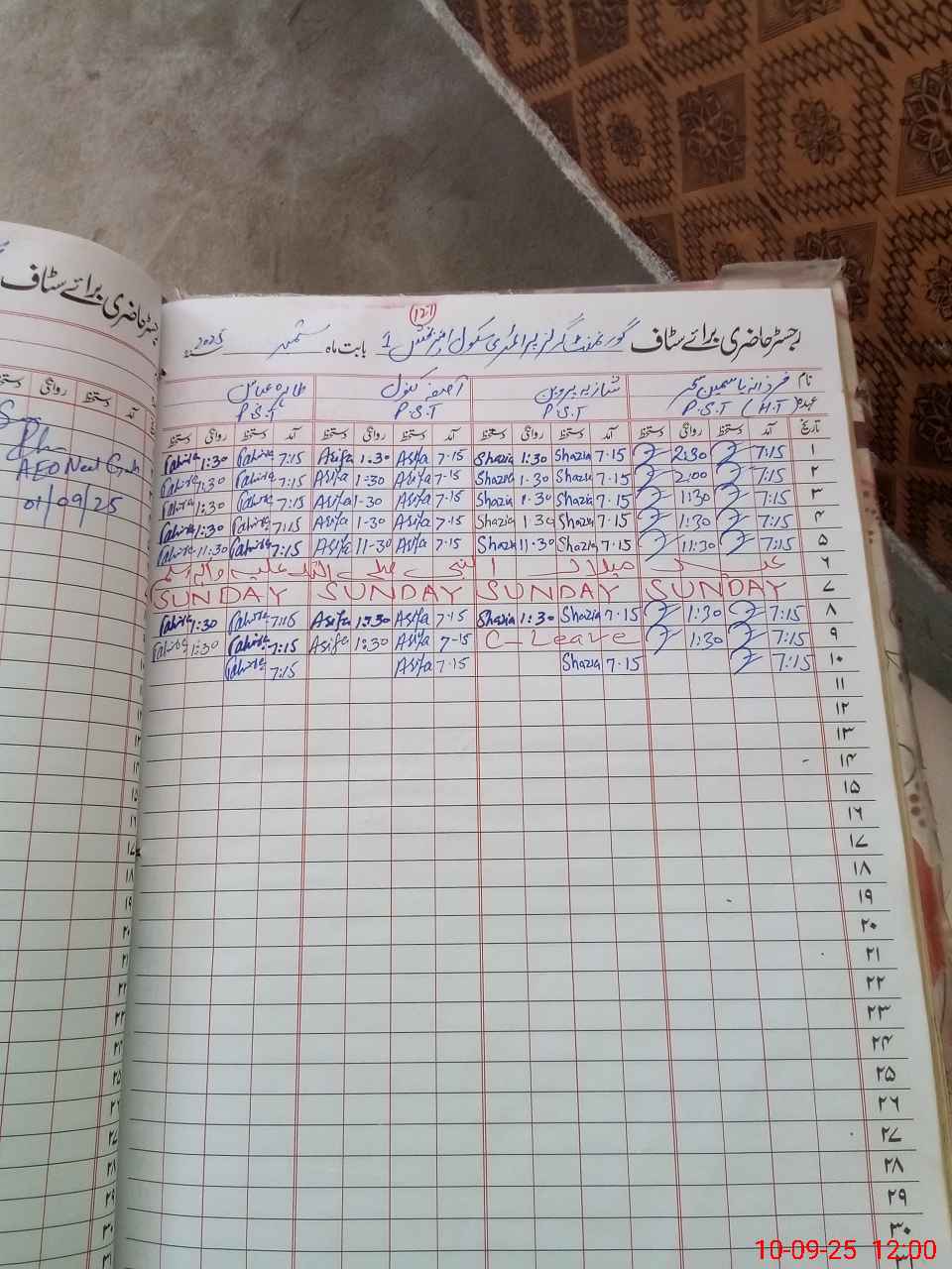 | CNIC | Full Name | Designation | R/C | Absence During Last Calender Month |