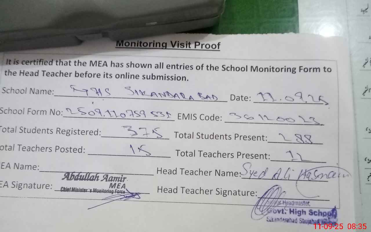 | EMIS Code: 36120023 | Name of School: GHS SIKANDER ABAD | |||