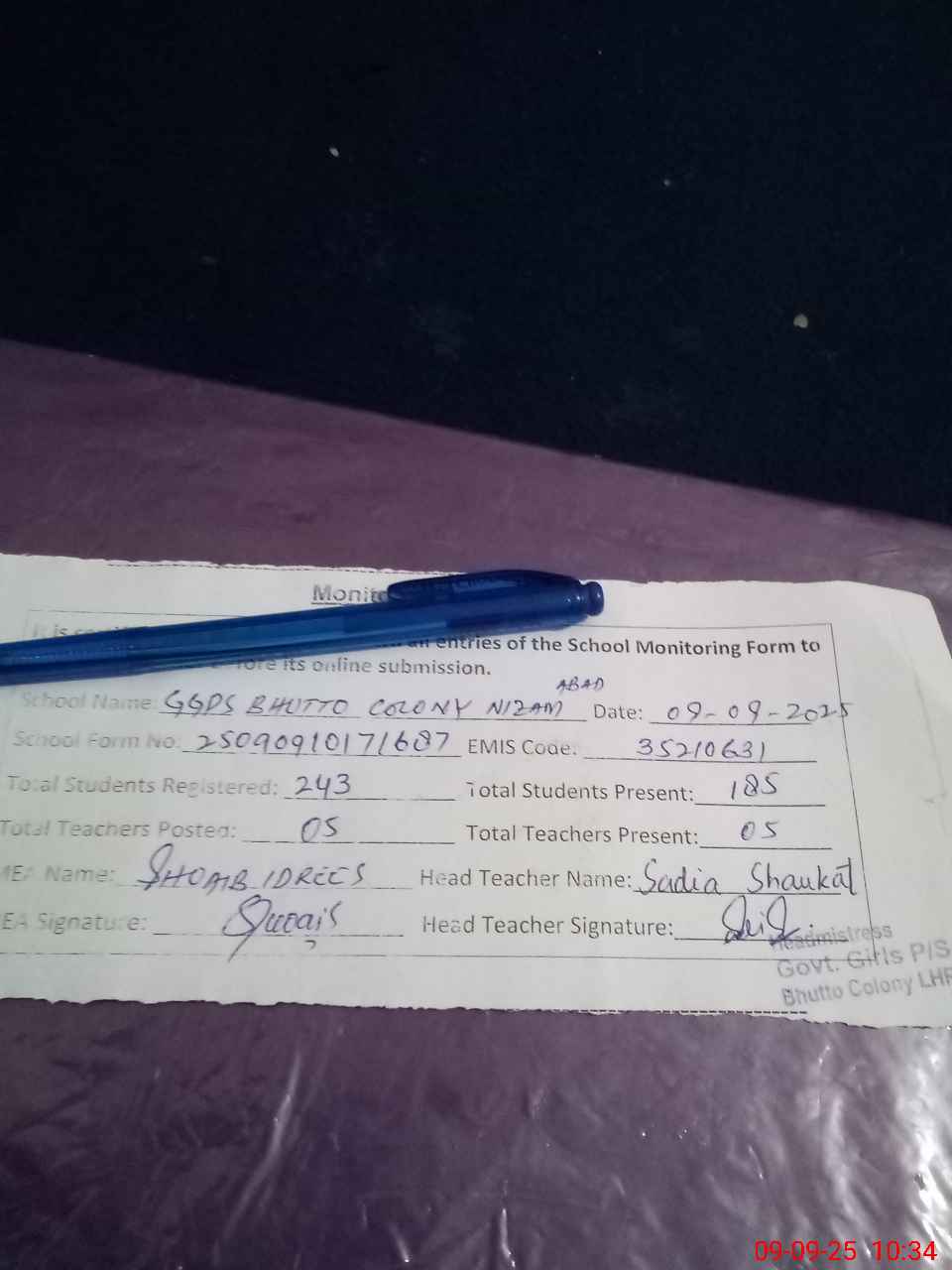 | EMIS Code: 35210631 | Name of School: GGPS BHUTTO COLONY NIZAM ABAD LAHORE | |||
