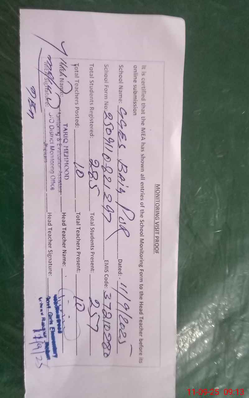 | EMIS Code: 37210280 | Name of School: GGES BAIG PUR | |||