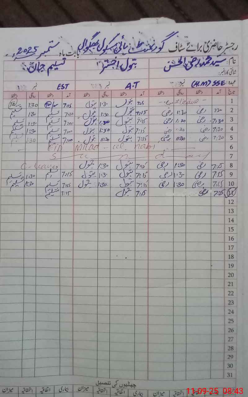 | Name: Mu**** Ja**** An**** Designation: (School Headmaster's/Headmistress's) Headmaster Phone/Cell Number: 03**** |