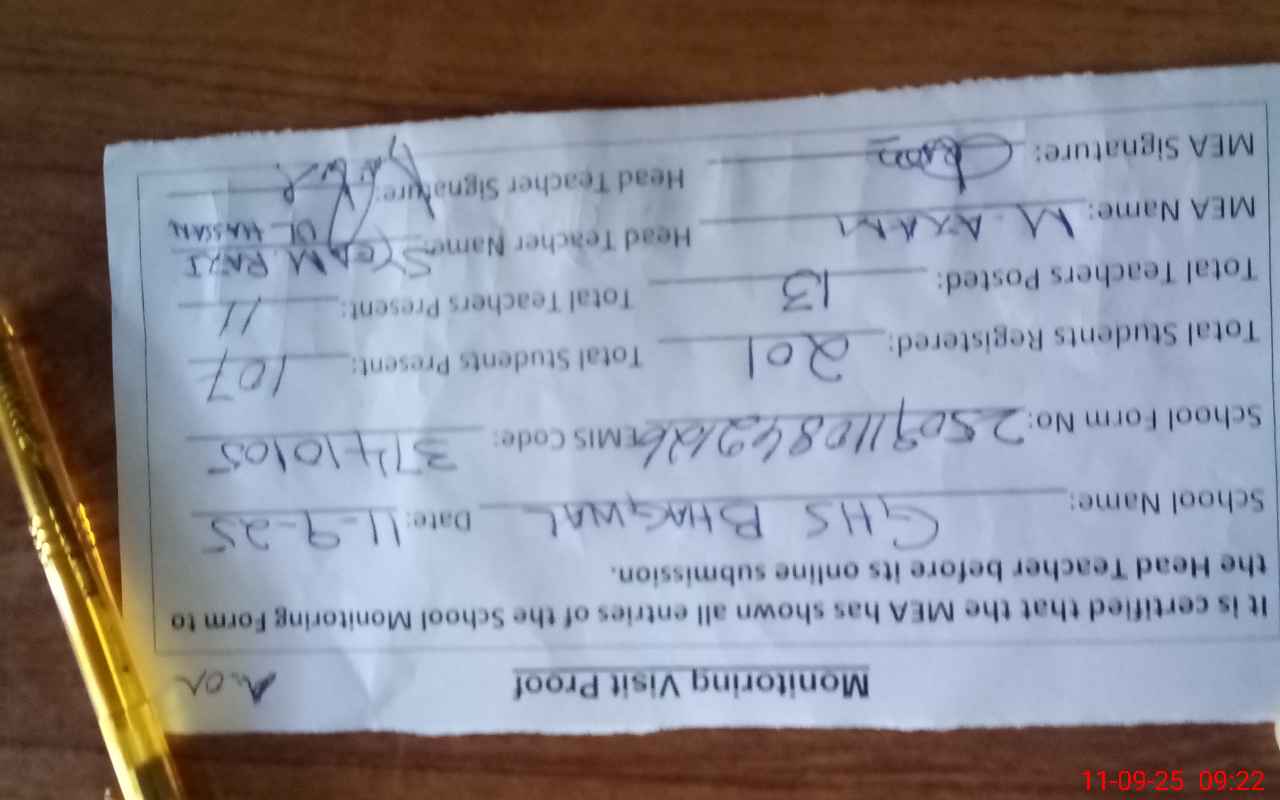 | Certified that this School was Inspected by the Undersigned MEA/DMO Today and the Information Stated Above is as Per Record. | |||||