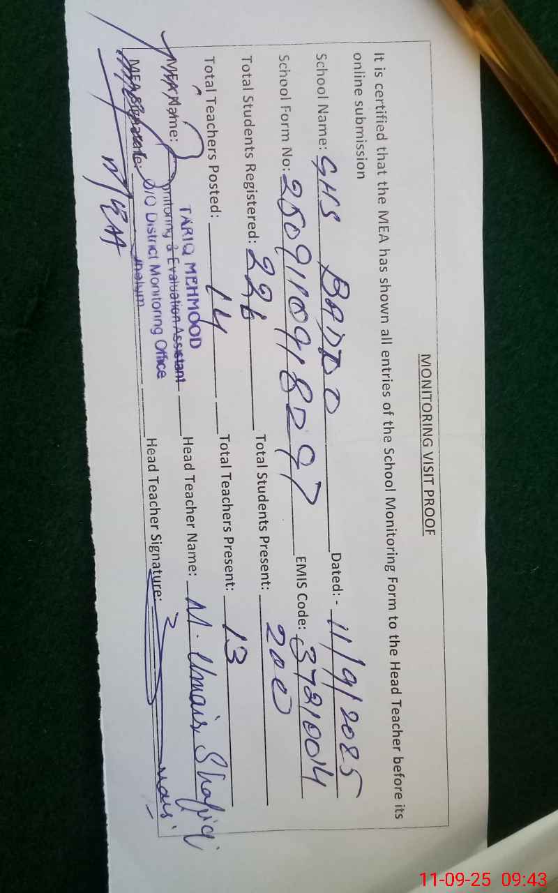 | EMIS Code: 37210014 | Name of School: GHS BADDO | |||