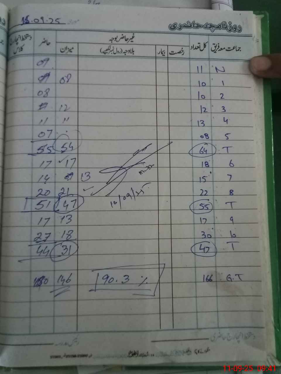 | CNIC | Full Name | Designation | R/C | Absence during last cal. month |