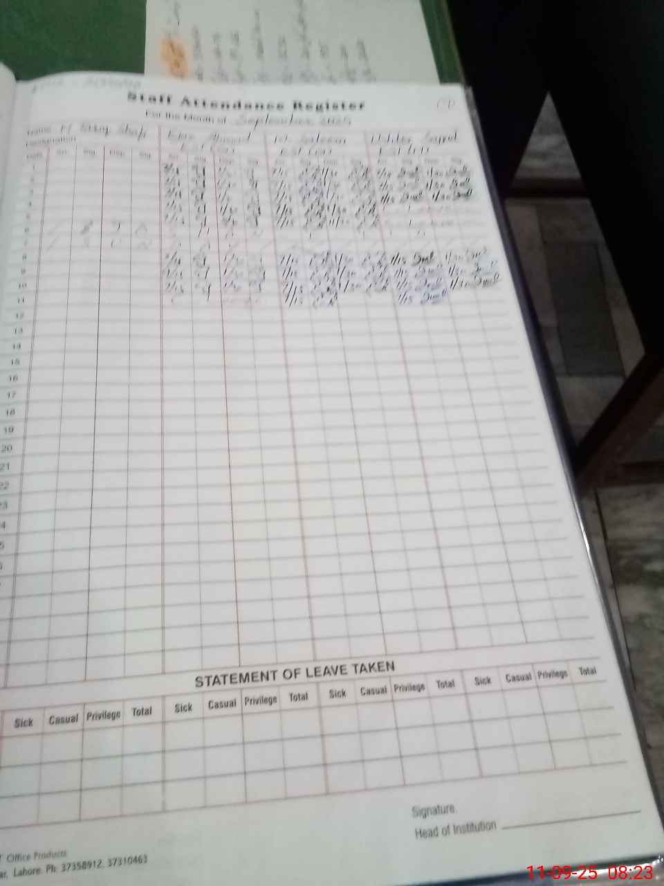 | CNIC | Full Name | Designation | R/C | Absence During Last Calender Month |