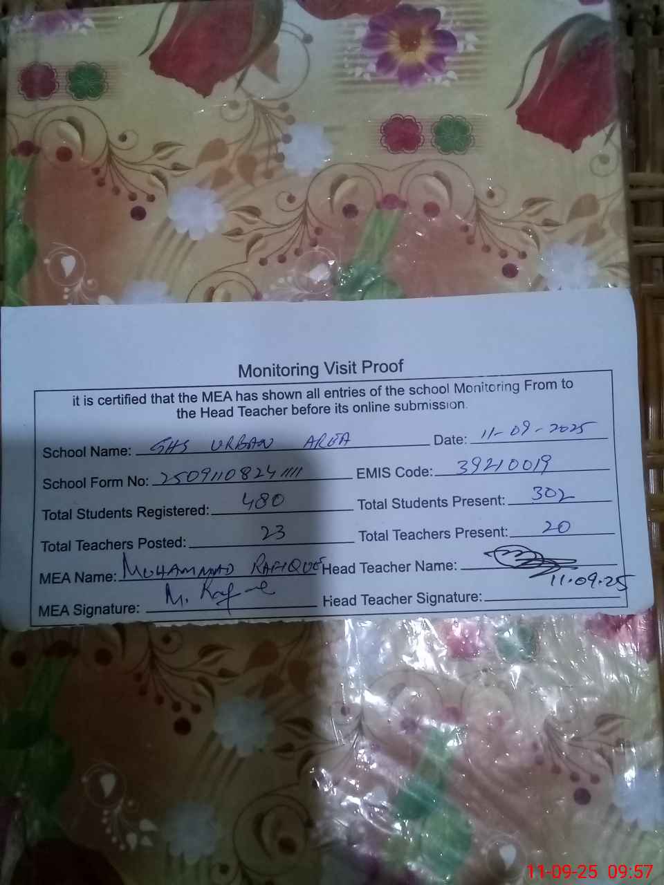 | EMIS Code: 39210019 | Name of School: GHS URBAN AREA ISLAM COLONY | |||