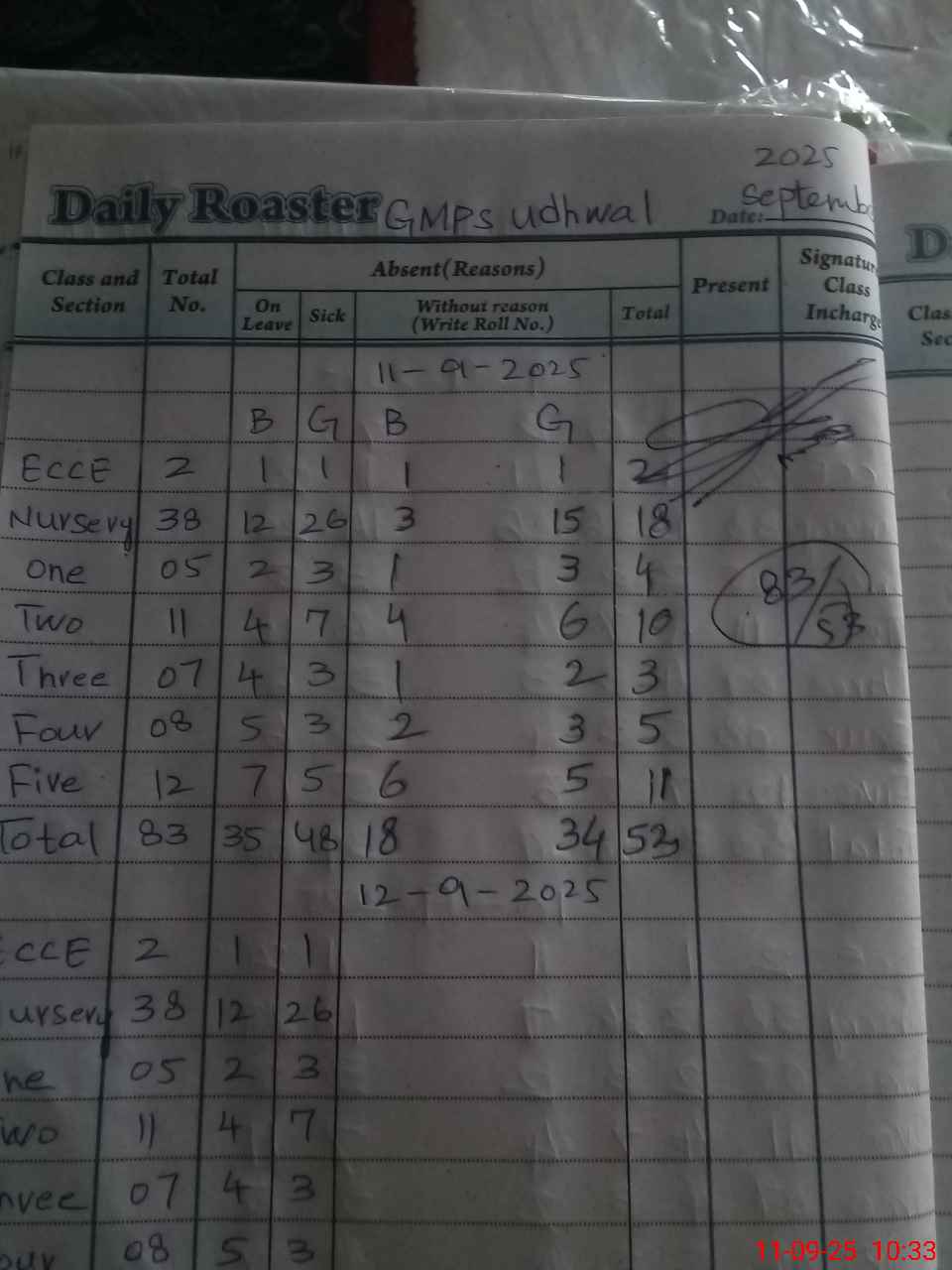 | Total Students Present | 2 | 0 | 18 | 4 | 10 | 3 | 5 | 11 | 53 | |||||||