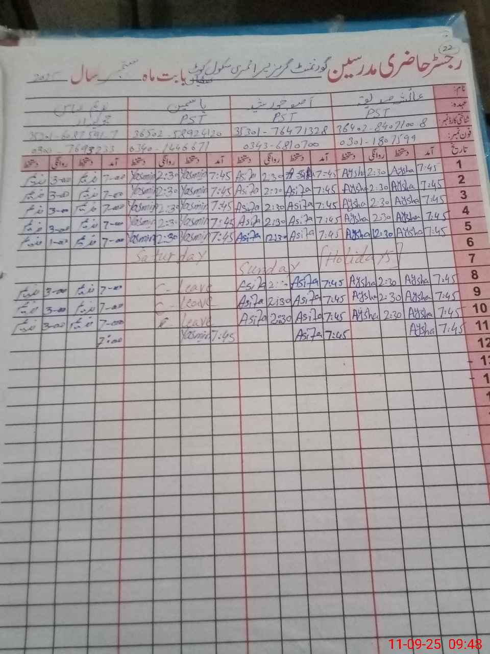 | Name: Ay**** Si**** Designation: (School Headmaster's/Headmistress's) PST Phone/Cell Number: 03**** |