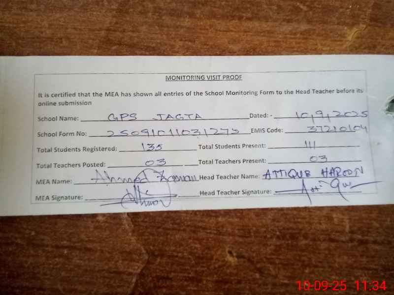| EMIS Code: 37210104 | Name of School: GPS JAGTA | |||