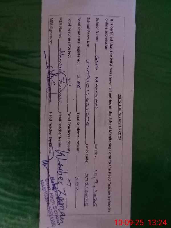 | EMIS Code: 37210045 | Name of School: GHS MAMYAN | |||
