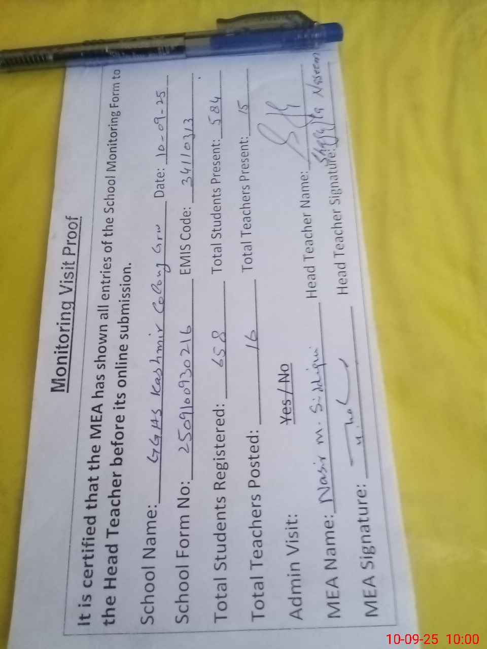 | EMIS Code: 34110313 | Name of School: GGHS KASHMIR COLONY NO.2 | |||