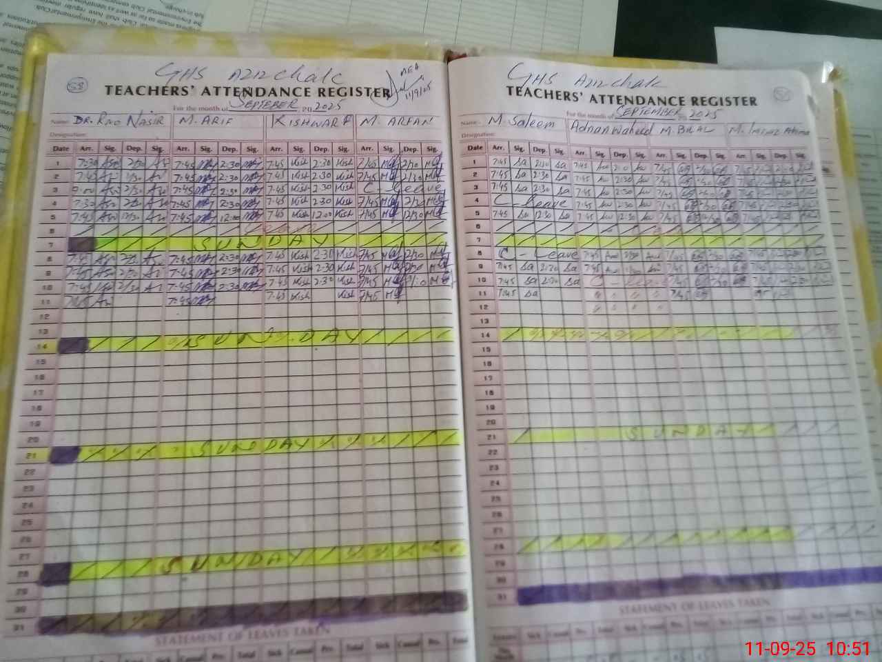 | 34**** | Ha**** Ra**** | NAIB QASID | 0 | 0 | 31 | 0 | 0 | 0 | 0 | 0 | 0 | Absent (Un-Authorized) | |