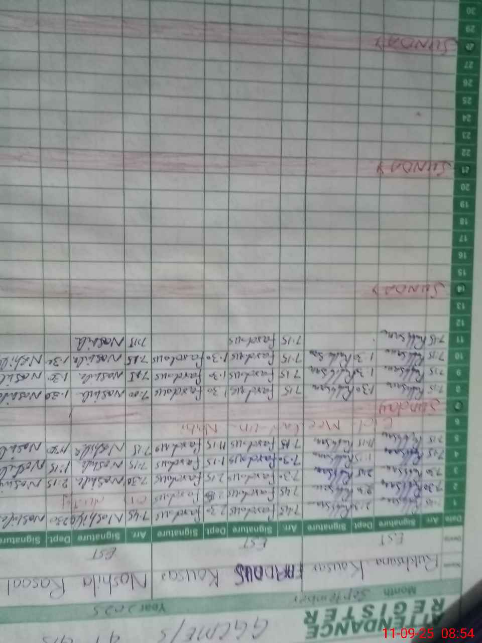 | 33**** | Na**** Sh**** | PST | Regular | 4 | 0 | 0 | 0 | 0 | 0 | 0 | 0 | 4 | Casual |