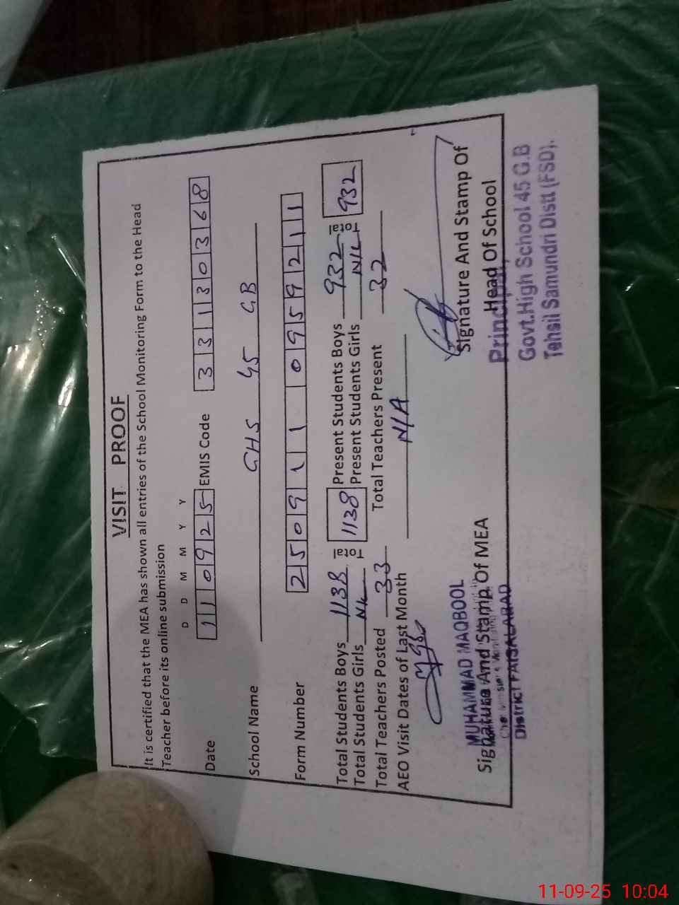 | EMIS Code: 33130368 | Name of School: GHS CHAK 45 GB SAMUNDRI FSD | |||