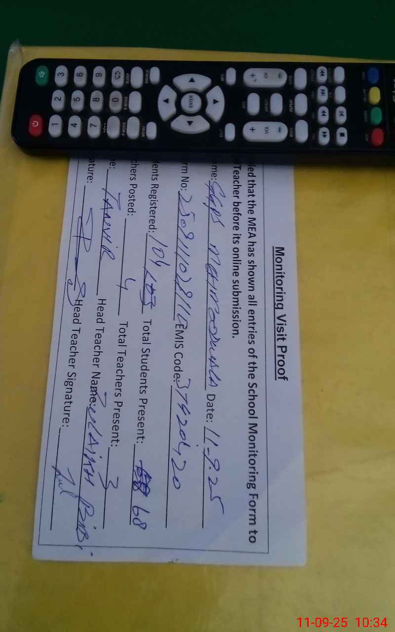 | Attendance Register | Head Teacher | MEA with School | Visit Proof |
