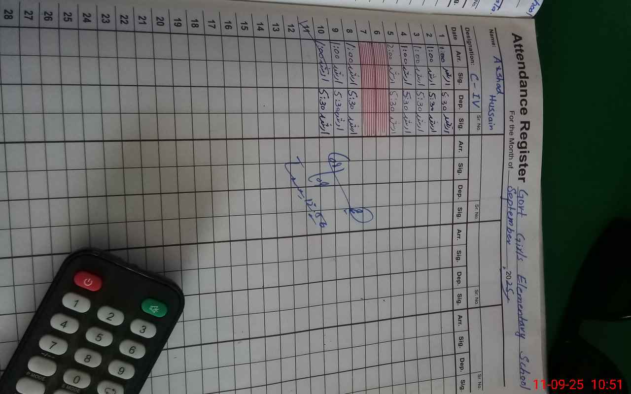 | CNIC | Full Name | Designation | R/C | Absence During Last Calender Month |