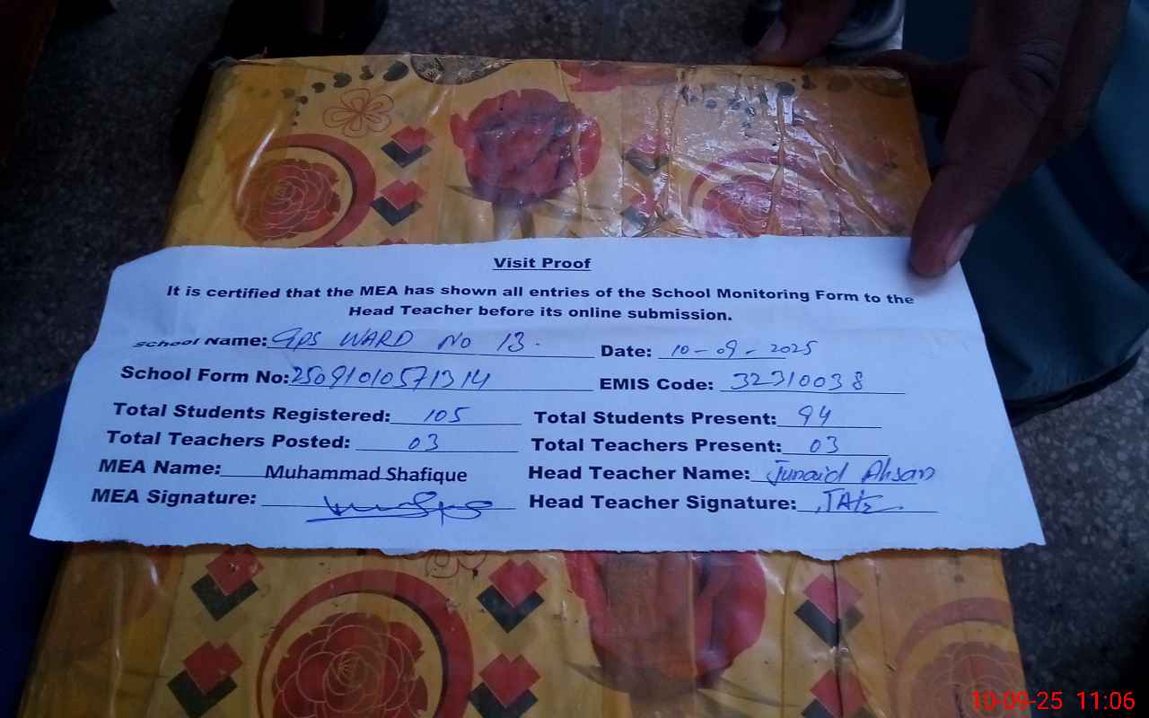 | EMIS Code: 32310038 | Name of School: GPS WARD NO. 13 ALIPUR | |||