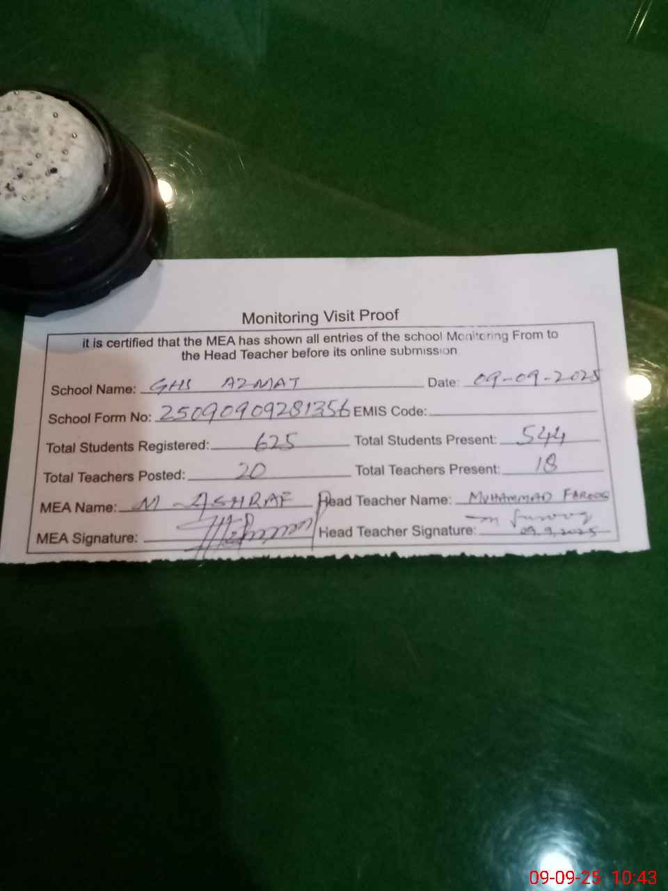 | EMIS Code: 39210022 | Name of School: GHS CHAK AZMAT | |||