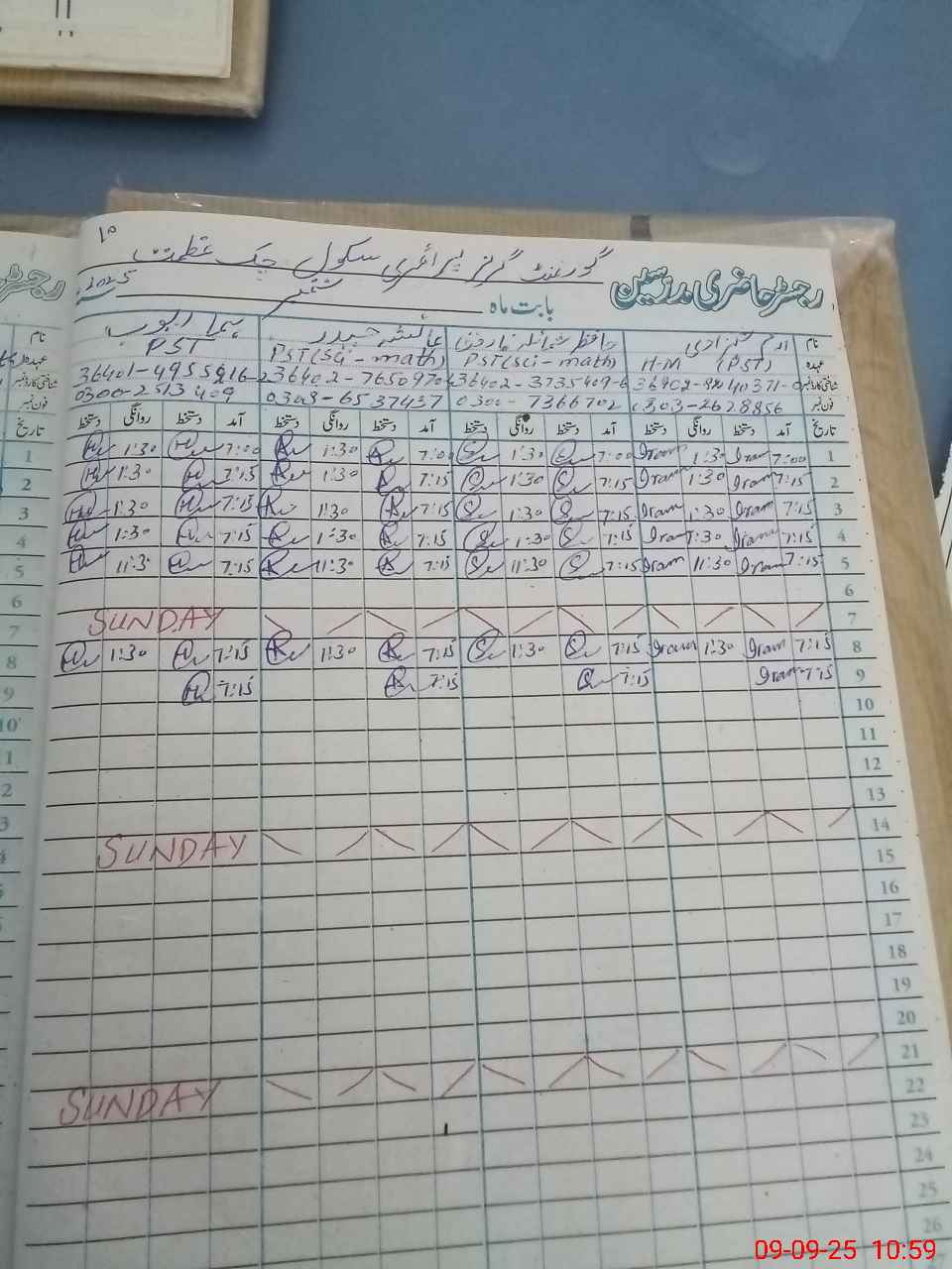 | Name: IR**** SH**** Designation: (School Headmaster's/Headmistress's) PST Phone/Cell Number: 03**** |