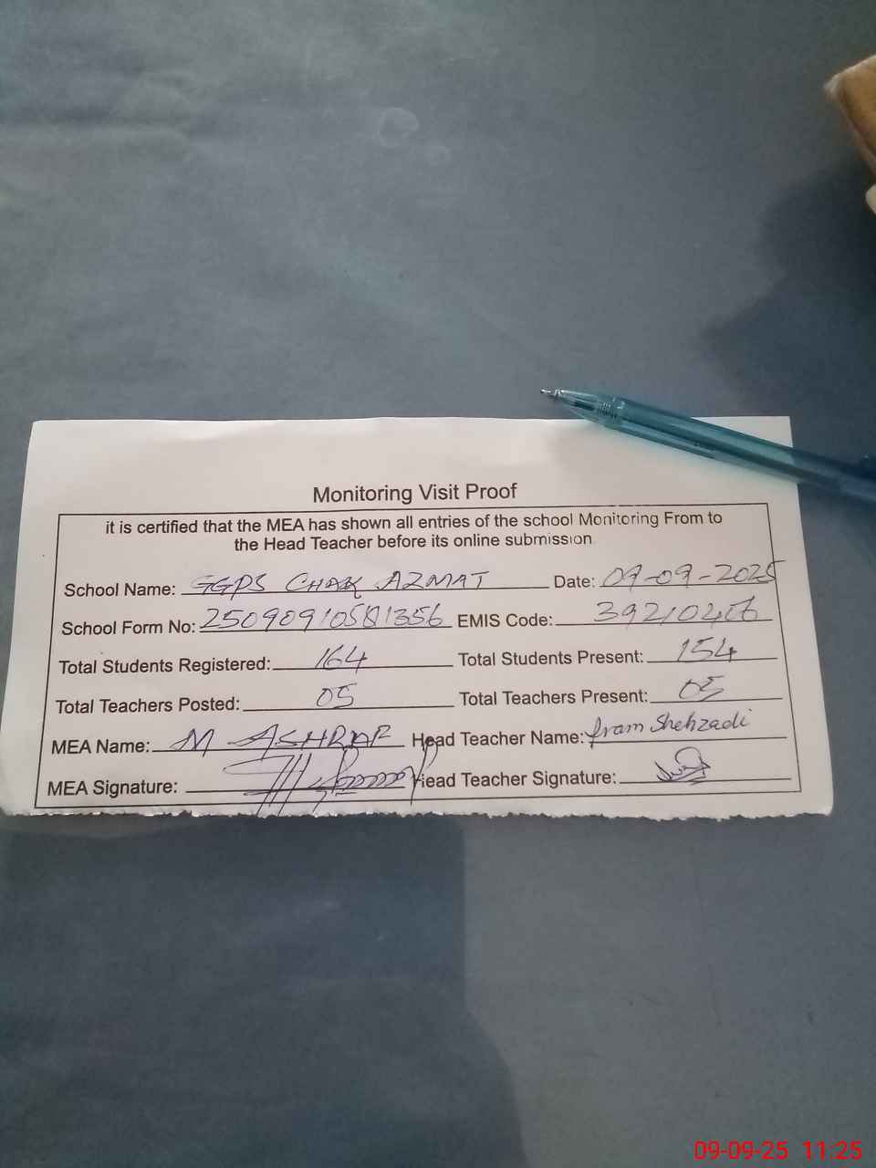 | EMIS Code: 39210406 | Name of School: GGPS CHAK AZMAT | |||