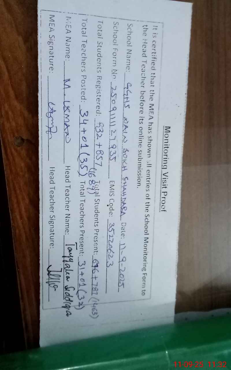 | EMIS Code: 35220623 | Name of School: GGHS NAIN SUKH SHAHDARA | |||