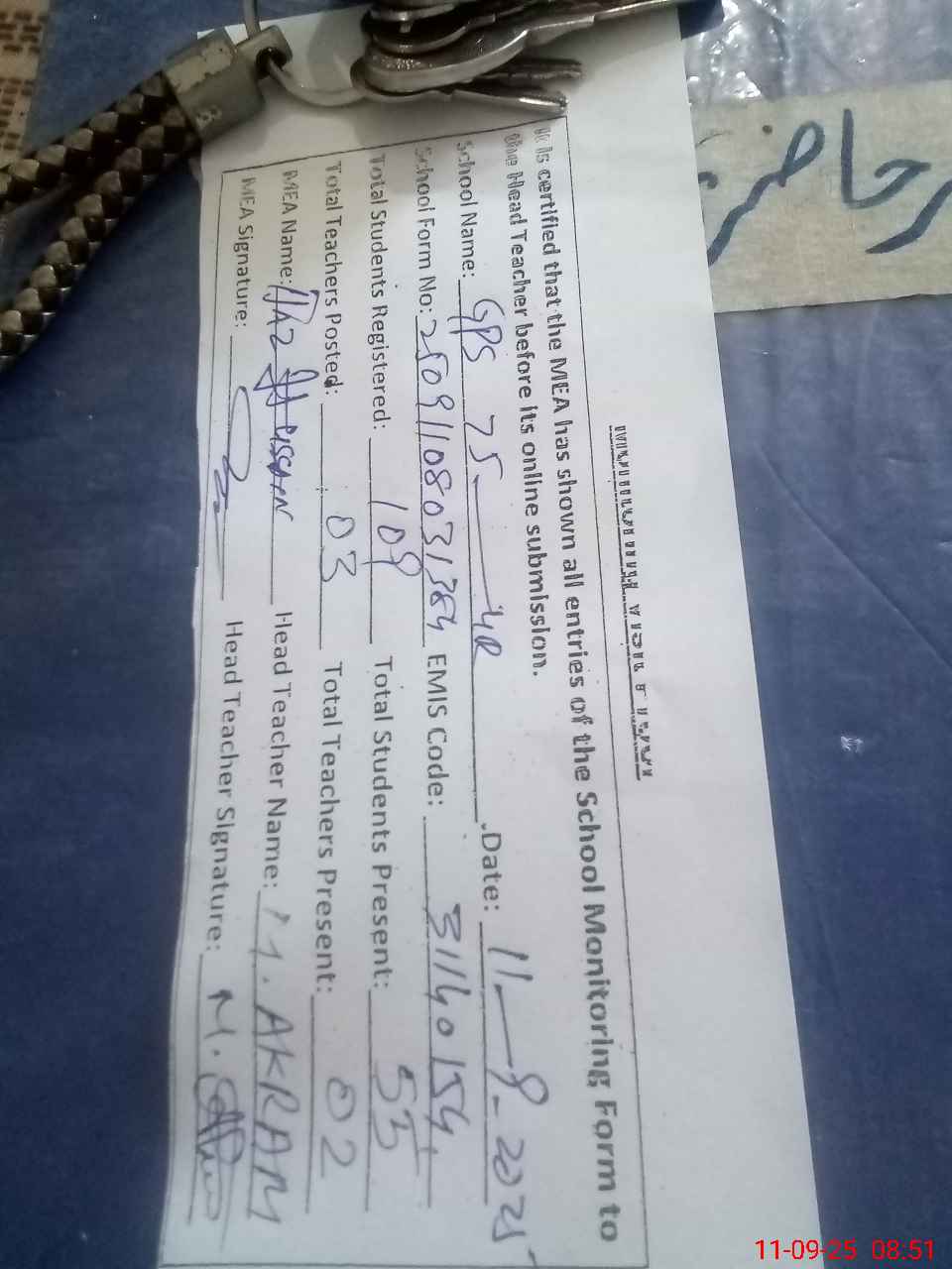 | Name: MAk**** Designation: (School Headmaster's/Headmistress's) Pst Phone/Cell Number: 03**** |