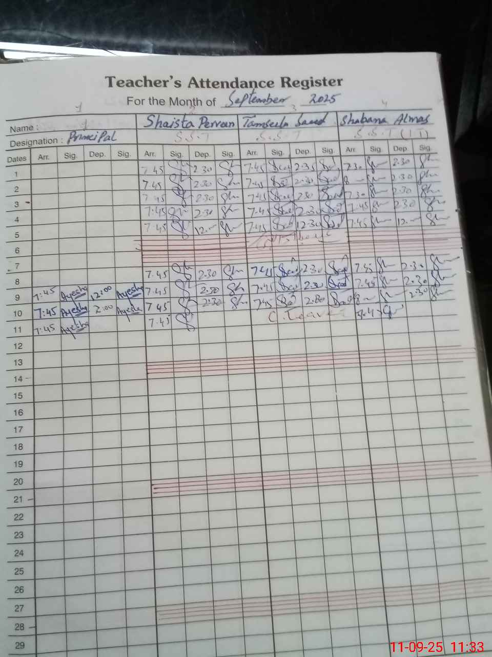 | Name: Ta**** Sa**** Designation: (School Headmaster's/Headmistress's) Incharge Head Phone/Cell Number: 03**** |