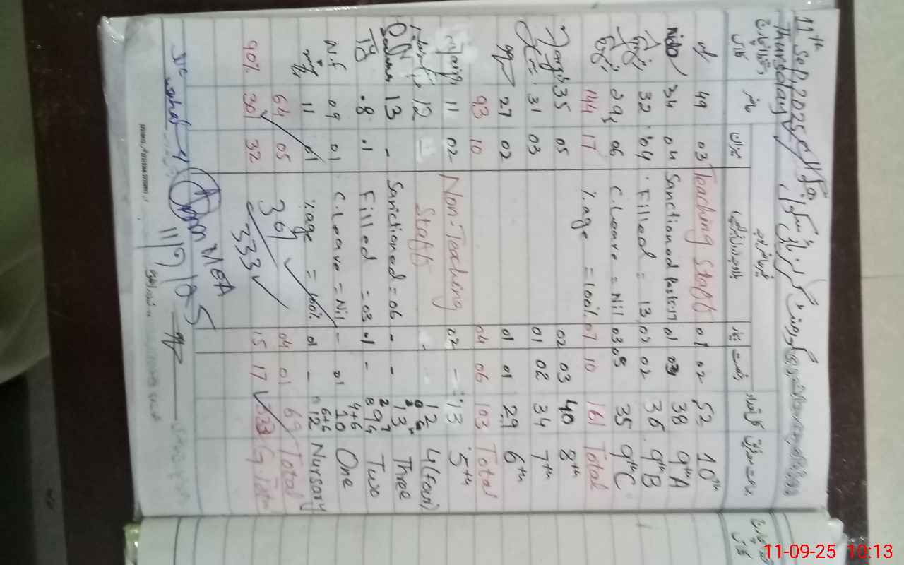| Total no. of Classrooms: 13 No. of Classrooms Used for Teaching: 10 No. of Classrooms Storing Old Furniture, FTBs, etc: 0Comments if Any: 0 |