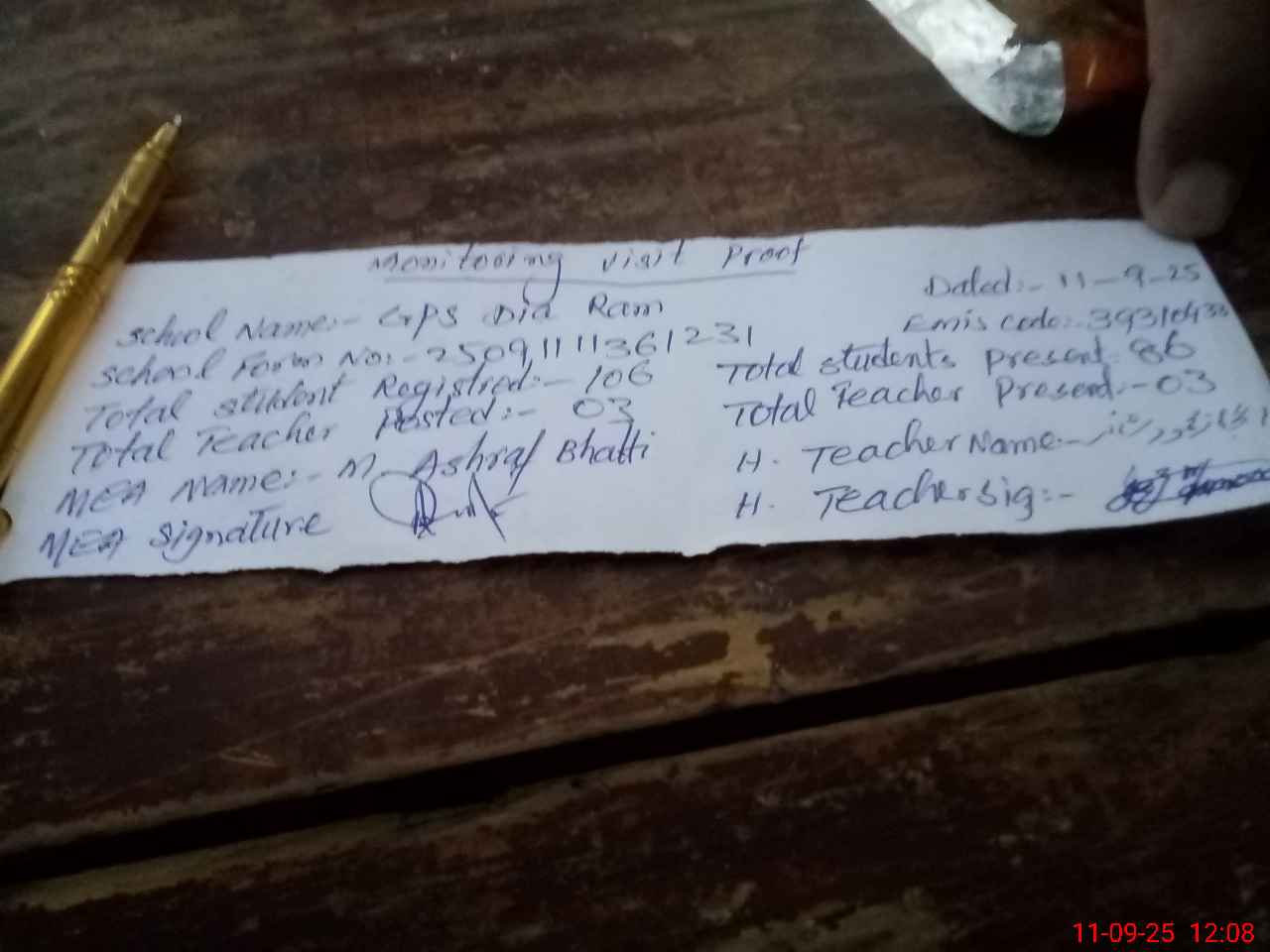 | EMIS Code: 39310433 | Name of School: GPS DIYA RAAM | |||