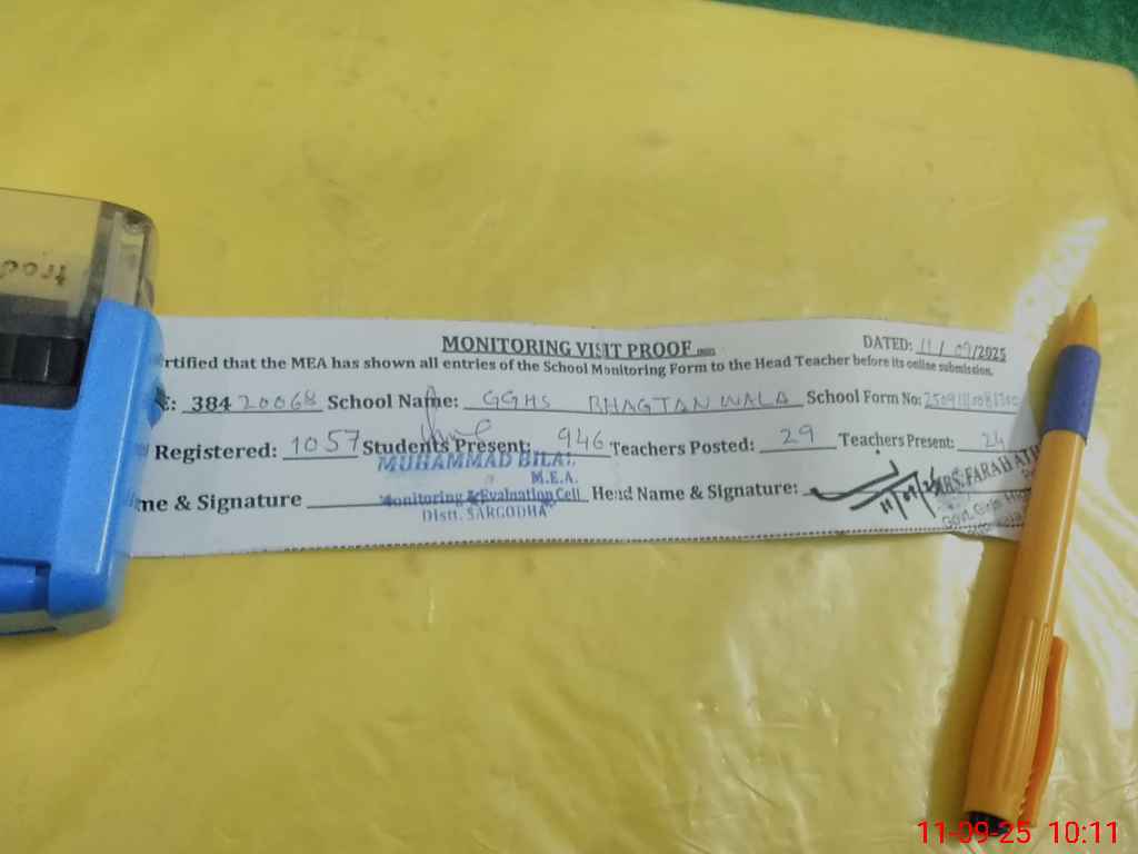 | Monitoring Date: 11-09-2025 | Start Time: 11-09-2025 09:37 AM | End Time: 11-09-2025 10:16 AM | Name of MEA: MU**** BI**** | |