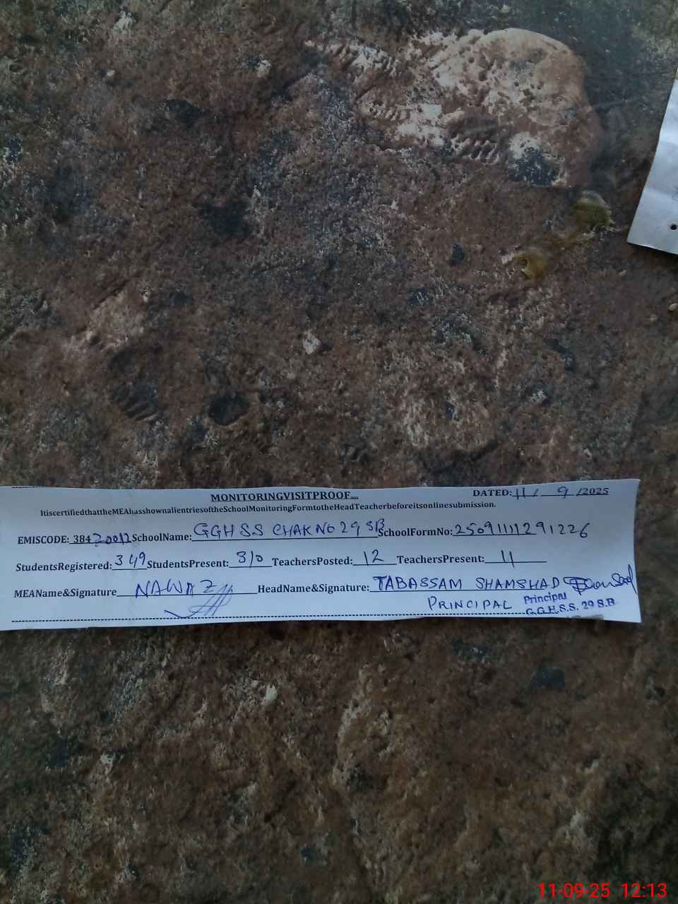 | EMIS Code: 38420012 | Name of School: GGHSS CHAK NO.29 SB | |||