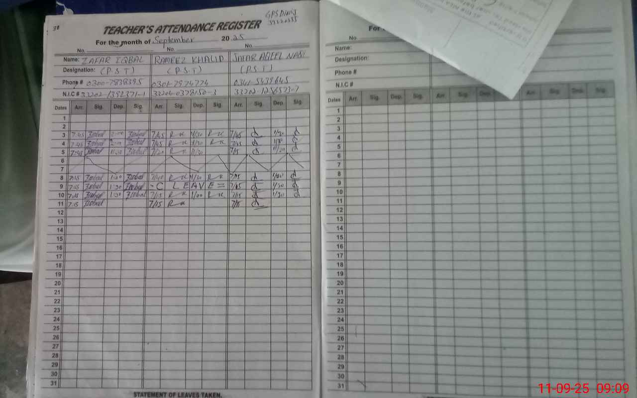 | Name: RA**** KH**** Designation: (School Headmaster's/Headmistress's) PST Phone/Cell Number: 03**** |