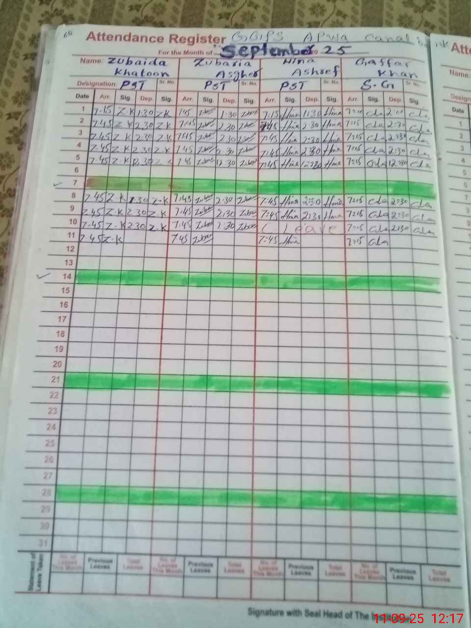 | Name: Zu**** Kh**** Designation: (School Headmaster's/Headmistress's) Head Mistress Phone/Cell Number: 03**** |