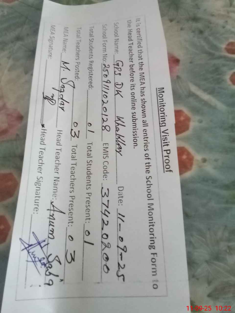 | EMIS Code: 37420200 | Name of School: GPS DHOK KHOKHAR | |||