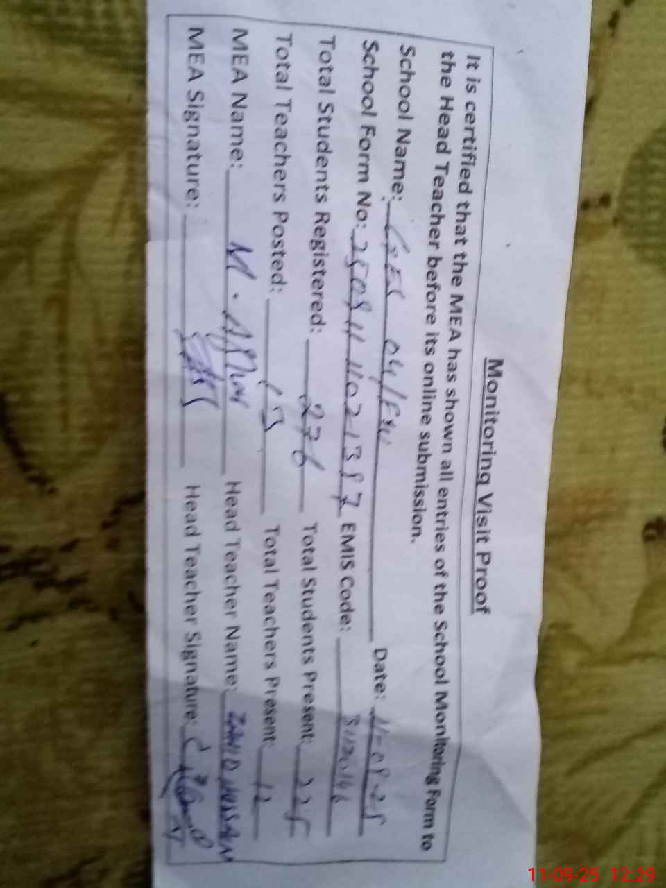 | Certified that this School was Inspected by the Undersigned MEA/DMO Today and the Information Stated Above is as Per Record. | |||||